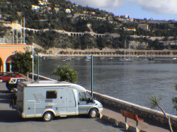 Weiter ging es dann über die atemberaubende Küstenstraße und hinein nach Frankreich, wo wir am Nachmittag eine Pause im schönen Villefranche einlegten. Hier gefiel es uns so gut dass wir spontan beschlossen über Nacht zu bleiben. Weil der Stellplatzführer nichts hergab und der Campingplatz weit außerhalb lag, fragten wir in der Tourist Info und bekamen den Tip, auf einem Parkplatz im Hafen bleiben zu können, wo es uns dann auch sehr gut gefiel..... |