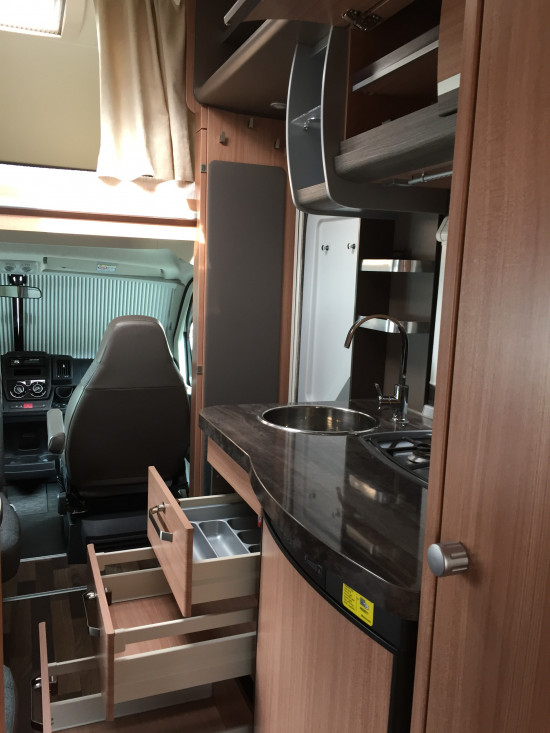 Sehr vielseitiges, kompaktes Alkovenfahrzeug, gut passend sowohl für Paare, die sich etwas mehr Platz und ein sehr großzügiges Raumgefühl wünschen, als auch für Familien. Große Sitzgruppe mit gegenüberliegender Bank für eine gemütliche Runde oder einen bequemen Abend.