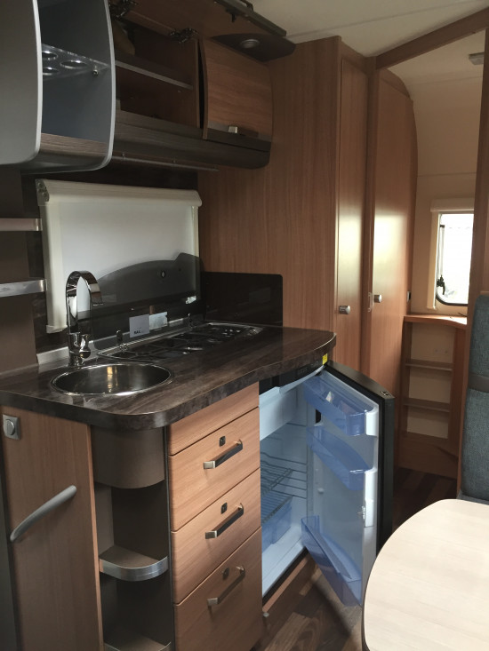 Küche mit 3-Flamm-Herd, Spüle und 3-Wege Kühlschrank