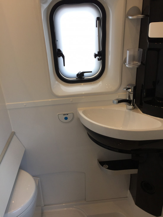 mit komplettem Sanitärraum, festem Heckbett,